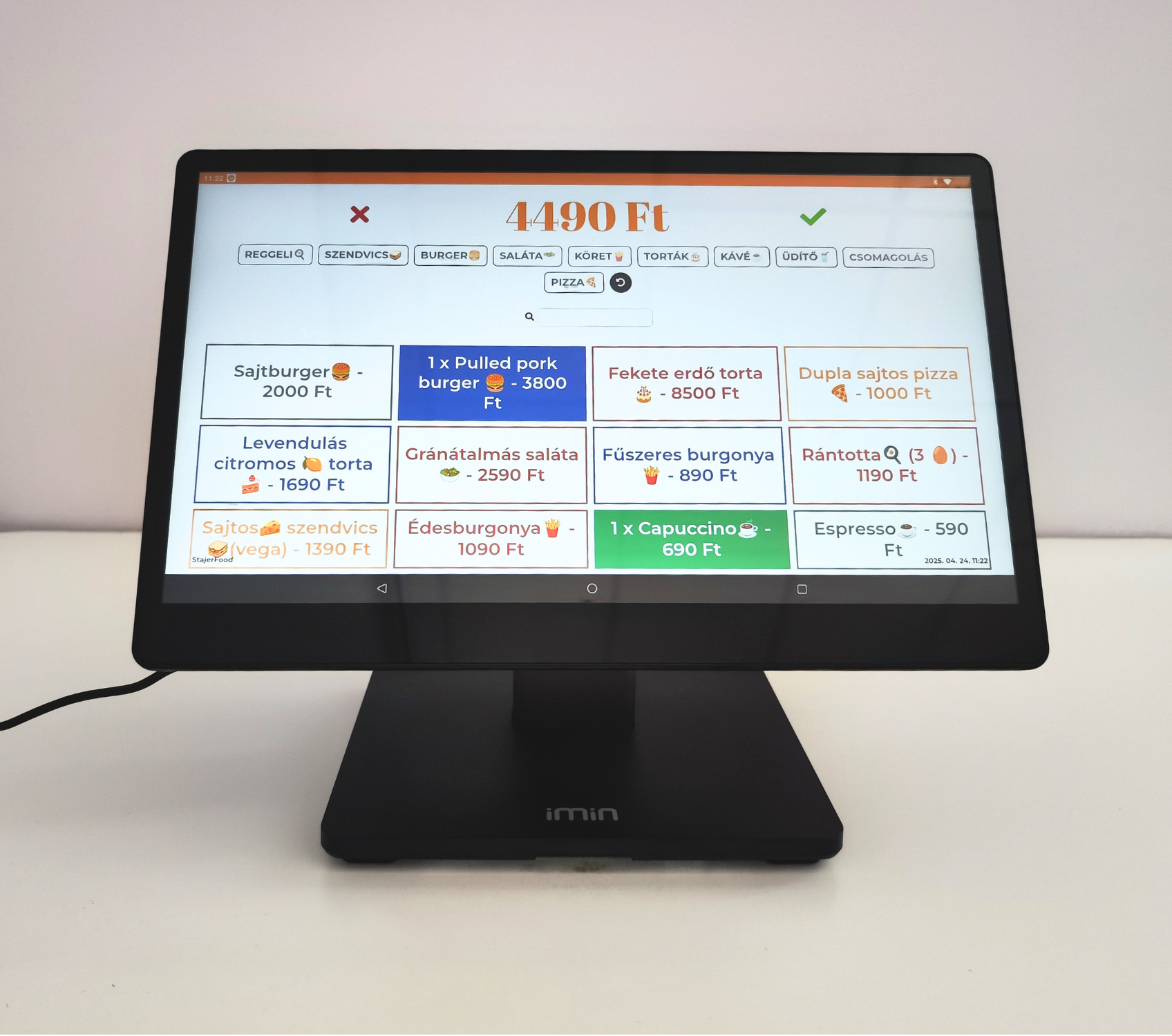 Ez a modern, érintőkijelzős terminálgép tökéletes választás a vendéglátásban dolgozók számára: gyors rendelésfelvétel, helyben nyomtatott blokk és egyszerű használat egyetlen eszközben. A készüléket akár 0 Ft-os kezdőáron is megkaphatod, és egyedi, forgalomhoz igazított feltételeket kínálunk partnereinknek. Kiváló megoldás éttermek, food truckok és kávézók számára, akik hatékonyabbá tennék a rendeléskezelést és a kiszolgálást.